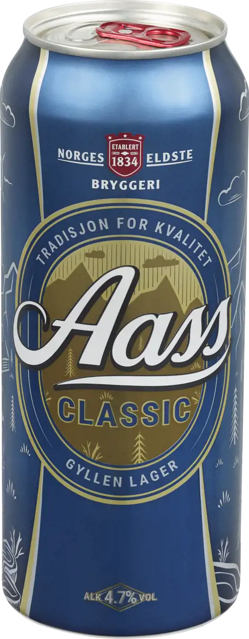 Aass Classic is a golden beer with a sweet aroma of grain and malt. The beer has a round taste with a moderate sweetness and balanced bitterness. This beer is brewed according to the German Purity Law.