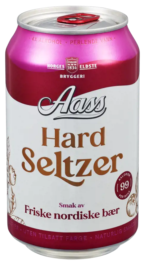 Aass hard seltzer friske nordiske bær (fresh nordic berries) is a sparkling alcoholic drink with only 99 calories per can. Enjoyed chilled over ice. Without added colors.