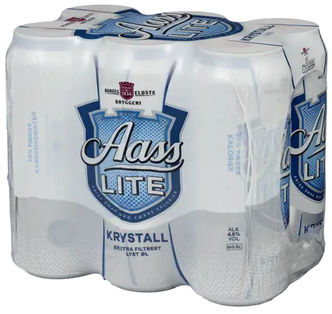 Aass Lite Krystall is a gluten reduced, straw yellow lager with 30% less calories and 70% fewer carbohydrates. Extra filtered for a light and crisp taste.