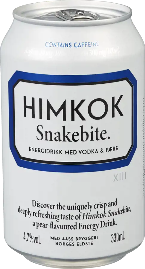 Opplev den unikt forfriskende smaken av Himkok Snakebite: En energidrikk med vodka og pæresmak.