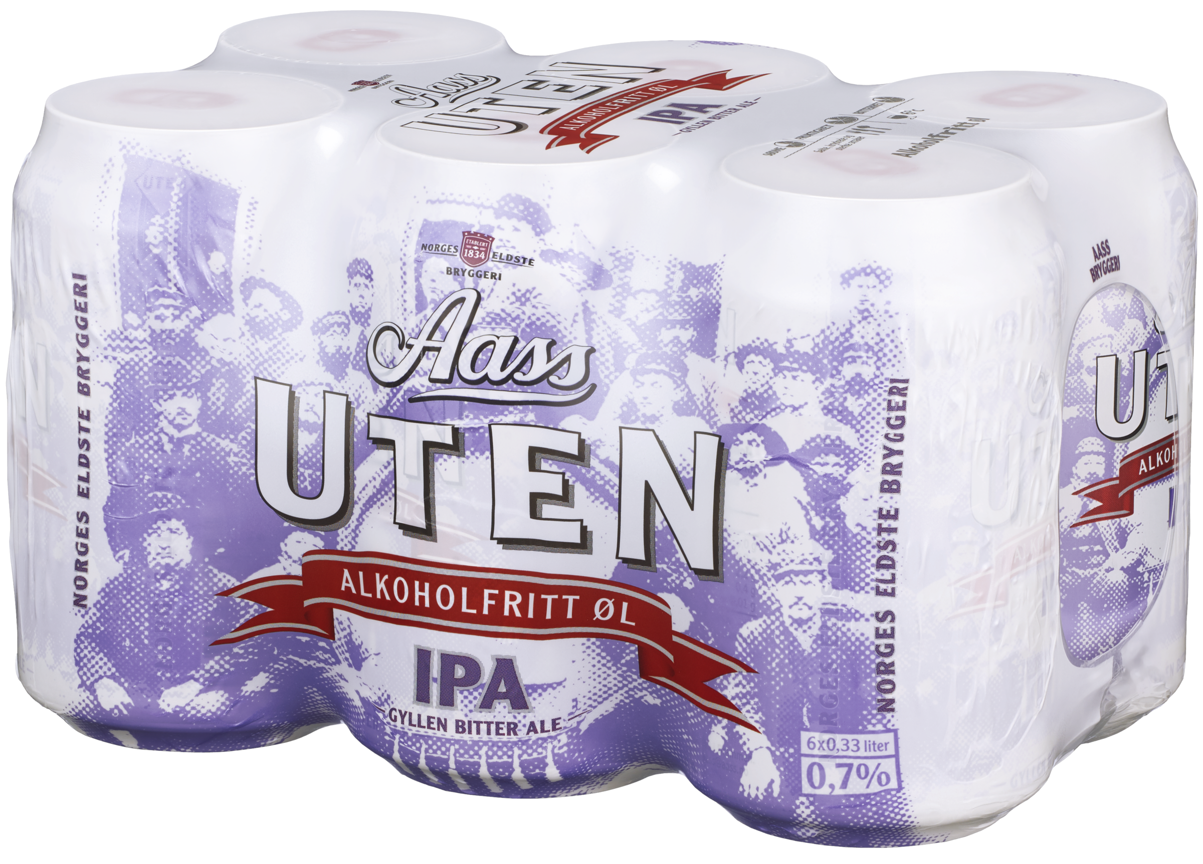 Aass UTEN IPA is a copper red colored non-alcoholic beer with an aroma of malt, hops and fruit. The beer has a distinct hops flavor with a high bitterness and balanced fruitiness. This beer is brewed according to the German purity law. The norwegian word "uten" translates to "without".